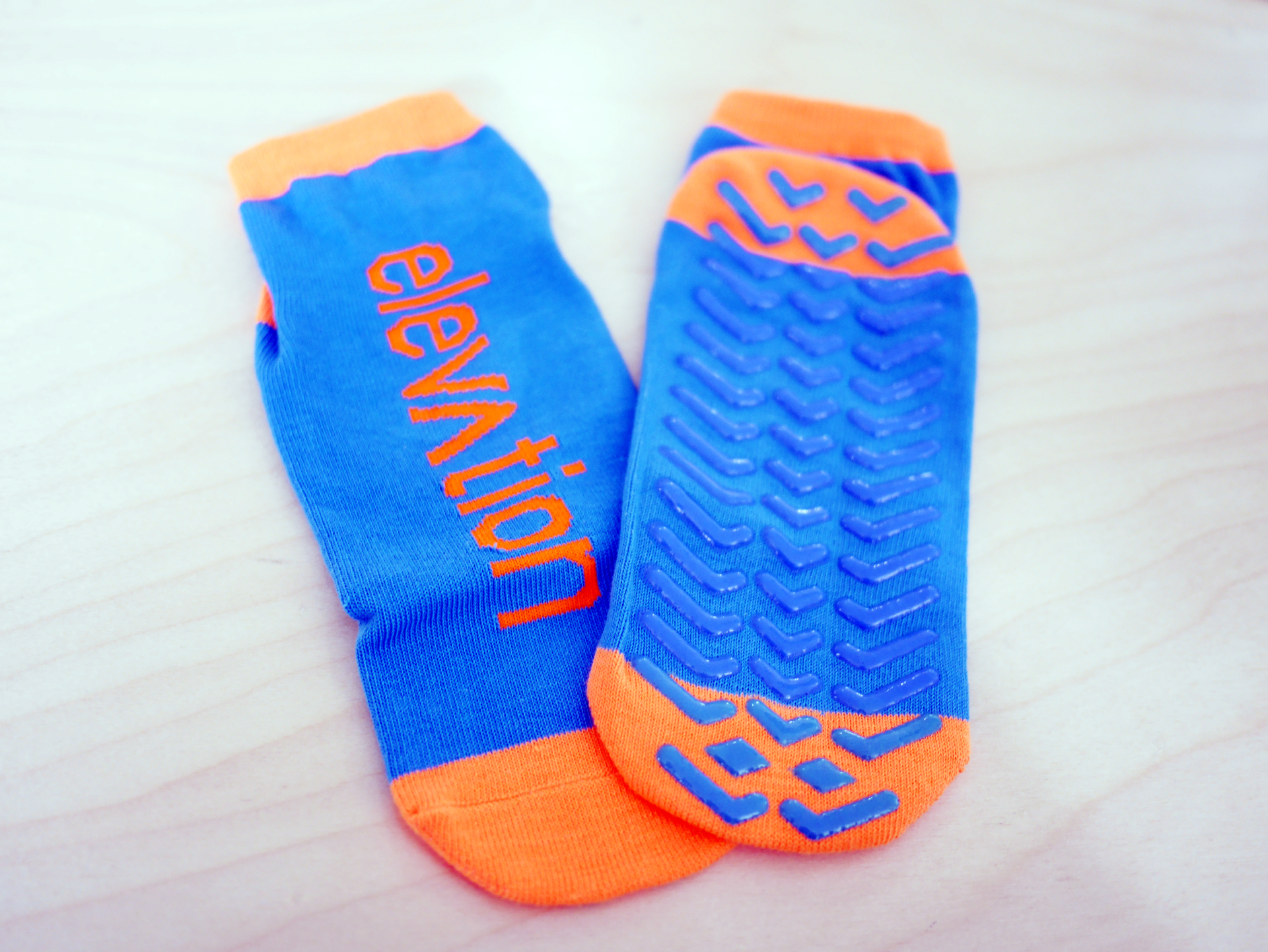 Lorsque vous entrez dans l’air de jeux, vous devez impérativement avoir les bas antidérapants Elevation Trampoline aux pieds.